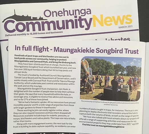 A big thanks to the team at the Onehunga Community News for their ongoing interest and support in helping to let the local community know of our project. With a distribution to 16,000 households it's a great way to get our message out.