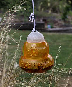 The hanging WASP Trap is designed for backyard use to get rid of wasps.